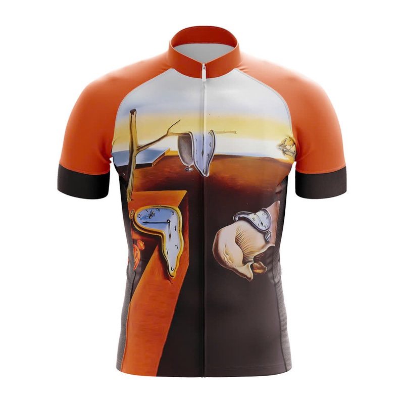 Dive into surrealism with the Persistence of Memory Cycling Jersey, inspired by Salvador Dals iconic melting clocks. This jersey brings Dals dreamlike vision to life with bold designs that stand out on any trail or road. Crafted with lightweight, moisture-