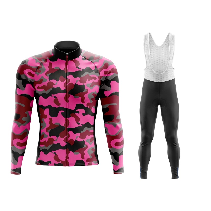 Pink Camouflage Long Sleeve Winter Cycling Kit S Regular