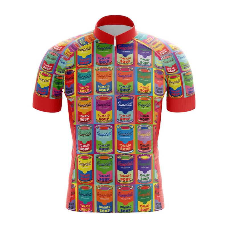 Add a splash of artistic flair to your rides with the Pop Art Soup Cycling Jersey. Inspired by iconic pop art designs, this jersey features a bold, vibrant pattern reminiscent of classic soup can art. Designed with lightweight, breathable fabric, its perfect for cyclists who love combining performance with creative style.