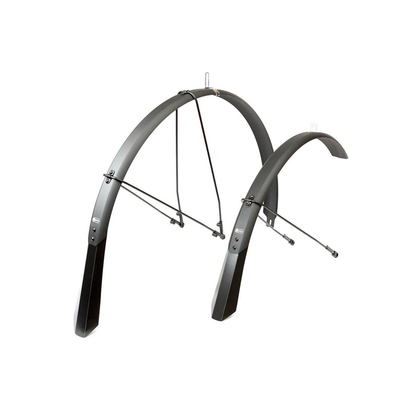 Made of sturdy anodized aluminum and adorned with laser graphics. The 700x55mm Full Metal Fenders will fit close clearance bikes with 700x47mm tires maximum. They come with special double rear stays that add stability and prevent rattling over larger tire
