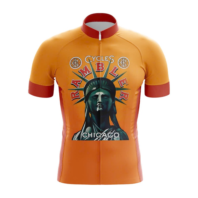Ride with iconic style in the Rambler Chicago Cycling Jersey. Featuring a bold design inspired by vintage cycling culture, this jersey showcases the Statue of Liberty with a nod to Chicago’s vibrant energy. Crafted with breathable, high-quality materials, its perfect for cyclists who want comfort and style on every journey.