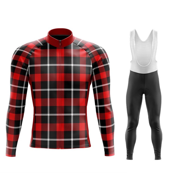 Red Lumberjack Long Sleeve Winter Cycling Jersey & Pants
