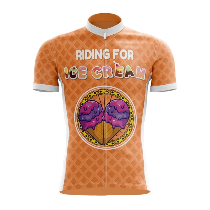 Riding for ice cream cycling jersey. Find more cycling clothes related to food over here. Regular fit.Front concealed zipper for increased ventilation.O-CollarThree rear pockets to store everything you need on your ride.Internal silicone waist strip to kee