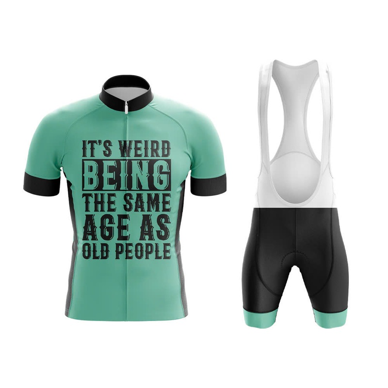 Embrace your humor and love for cycling with the Same Age as Old People Cycling Kit. This fun, tongue-in-cheek design features a jersey and matching bib shorts, perfect for cyclists who want to stand out with a bit of playful attitude on their rides. Stay