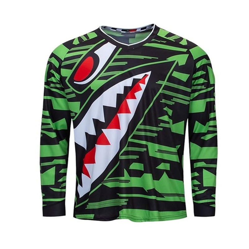 Go full predator on the trail with a bold green shark graphicbig eye, razor teeth, and attack lines. This MTB jersey is built for singletrack sessions, enduro stages, downhill shuttles, and bike-park laps. Long-sleeve coverage and a relaxed trail cut keep it ready for pads, jumps, and all-day dirt missions.