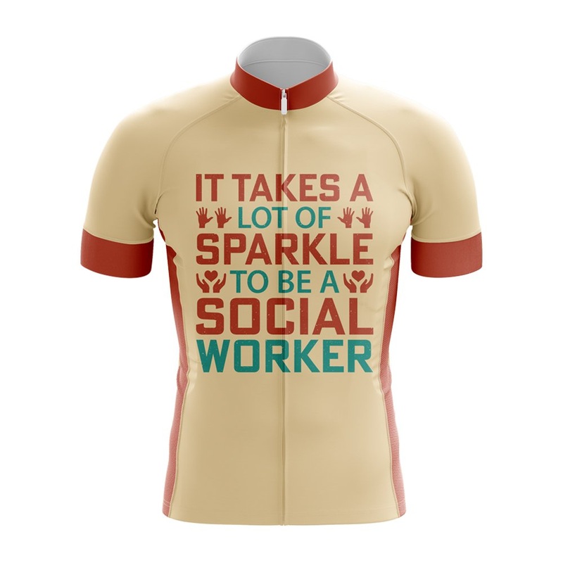 Shine on the road with the Social Worker Bicycle Jersey, featuring an uplifting phrase that celebrates your profession. Perfect for dedicated social workers who enjoy cycling, this high-quality jersey combines a motivational design with practical performance. Made from breathable, moisture-wicking fabric, it ensures comfort and style on every ride.
