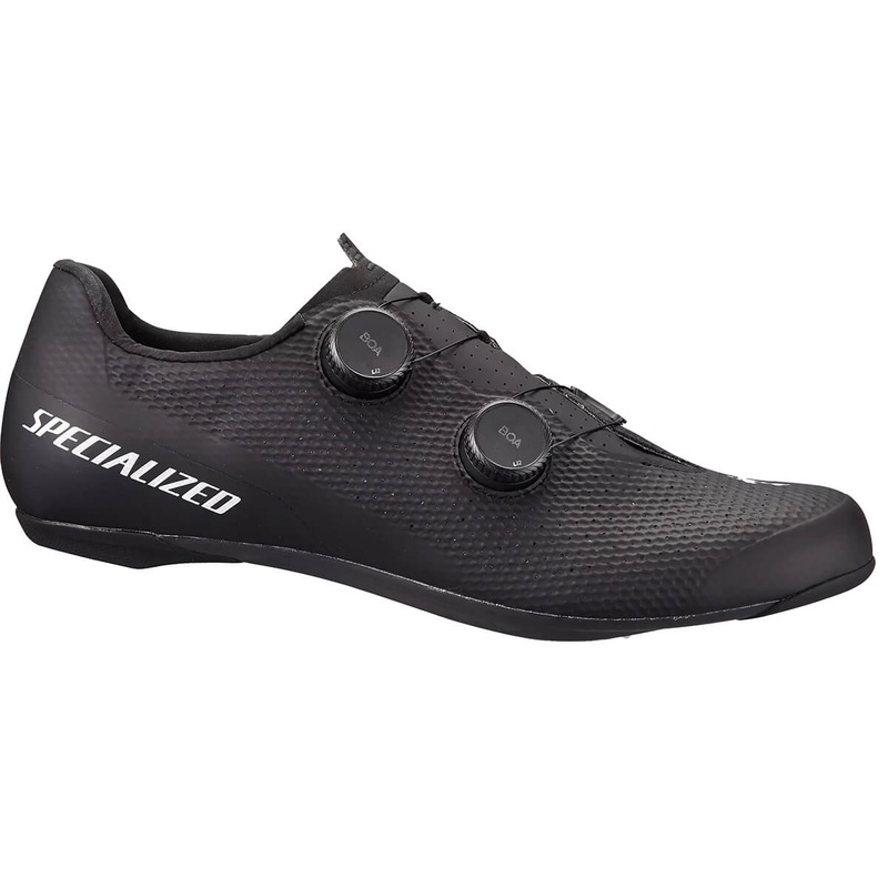 Carbon Plate: The Torch 3.0 features a lightweight, unidirectional carbon plate that enables balanced stiffness throughout the shoe, all while using less material, thus saving weight and ensuring efficient power transfer, mirroring its S-Works counterpart. Additionally, large rubber grips on the outsole of the toe and heel provide a stable, grippy platform for a seamless transition when pushing off the pavement to clip in or coming to a stop at a traffic light.