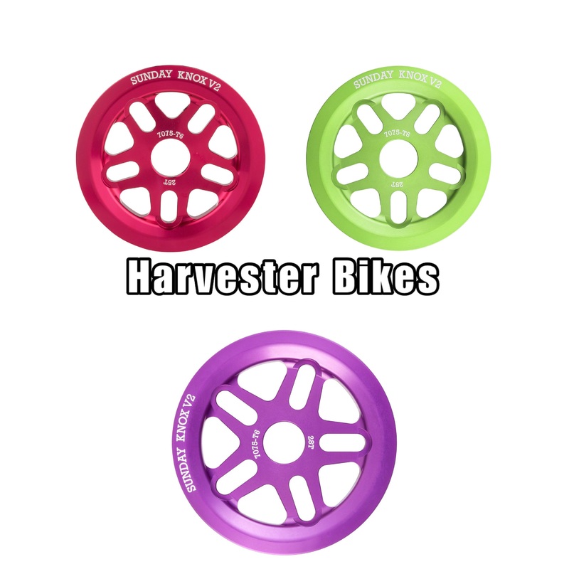 The Sunday Knox V2 guard sprocket made of 7075-T6 aluminum. Featuring refined machining geometry for a sleeker look, and designed to work with and protect all chains from unwanted impact.Full guard on one side of the sprocket with 5 rotatable sprocket bolt