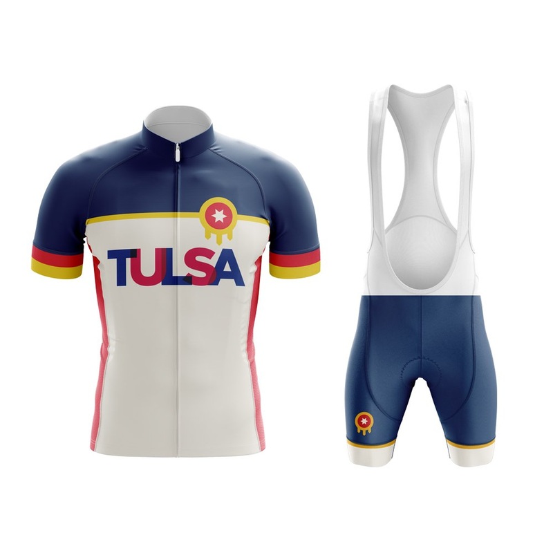 Celebrate the vibrant culture and history of Tulsa with our Tulsa Bicycle Jersey & Bib Shorts set. This matching set features a unique design inspired by the spirit of Tulsa, ensuring you stand out on every ride. The jersey is made from breathable, moisture-wicking fabric to keep you cool, while the bib shorts offer superior comfort with high-quality padding and a secure fit.