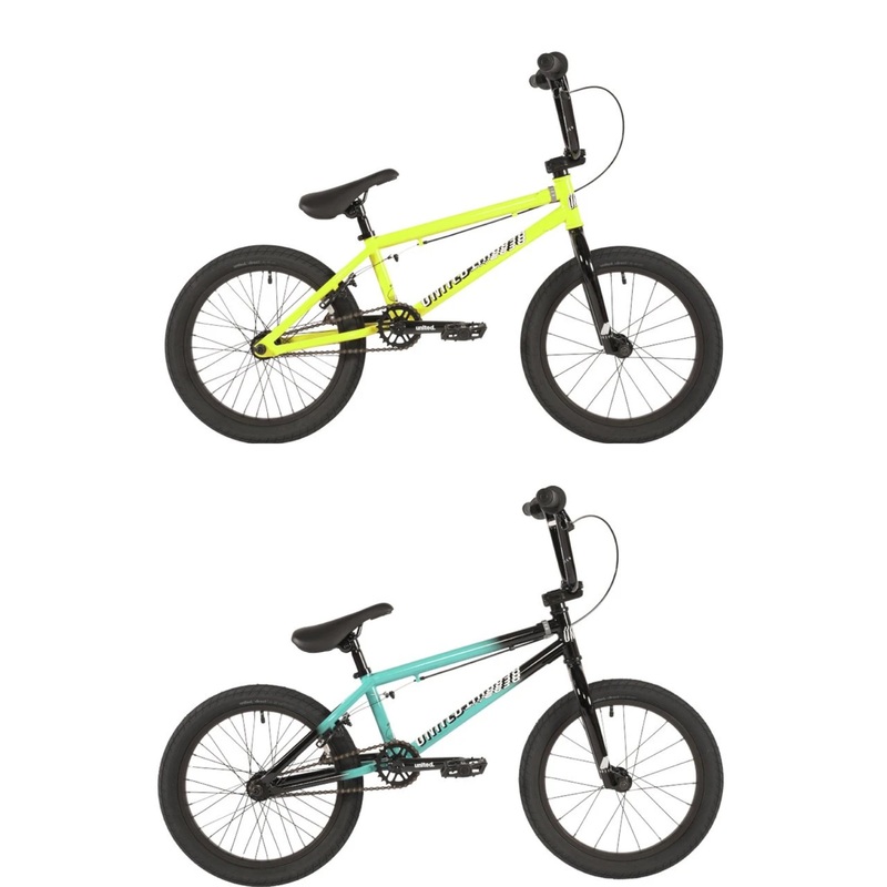 COLOUR:AQUA FADETOP TUBE LENGTH:18FRAME:1020 HI TEN, WELDED BRAKE MOUNTS, 1 1/8 HEAD TUBE, MID BB, EMBOSSED LOGO TOP TUBE GUSSET, 10MM AXLE SLOTSGEO:HT: 75 / CS: 12.25 / SO: 7.5 / BB: 10.75 / ST: 71FORKS:CNC CROMO STEERER TUBE, 1020 TAPERED HI TENSILE STEEL LEGSHANDLEBARS:7.75 X 26 1020 HI TENSILE STEEL WITH 1.5 UP SWEEP, 11 BACK SWEEPGRIPS:UNITED JR & UNITED ENDSHEADSET:1 1/8 A HEADSET PAINTED TO MATCH BIKE FRAME COLOURSTEM:UNITED 40MM REACH TOP LOAD STEM WITH EMBOSSED UNITED LOGO ON FACEPLATE AND FORGED DETAILING ON SIDESREAR LEVER:ALLOYREAR BRAKE:990CRANKS:3PC 140MM, TUBULAR, 8 SPLINE, PRINTED UNITED LOGOBB:UNITED SEALED BEARING MIDSPROCKET:25T STEELPEDALS:JUNIOR SIZE PLASTICCHAIN:X410REAR RIM:ALLOY 36H, SINGLE WALLFRONT RIM:ALLOY 20H, SINGLE WALLREAR HUB:36H SEALED CASSETTE HUB WITH 10MM AXLE, SEALED BEARING 9T DRIVER, 4 PAWL, ULTRA LOUD MECHANISMFRONT HUB:20H, LOOSEBALL BEARINGS, 10MM AXLEREAR TYRE:UNITED DIRECT 18 X 2.1 65PSIFRONT TYRE:UNITED DIRECT 18 X 2.1 65PSISEAT:UNITED RECRUIT JR RAILED WITH UNITED SEWN PATCH ON REARSEAT POST:STEEL W/GUTS 25.4MMSEAT CLAMP:ALLOY