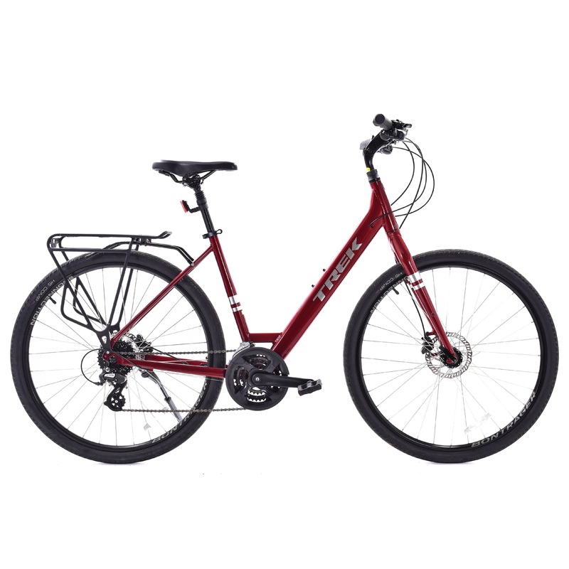 For sale is a USED 2021 Trek Verve 2 Disc Lowstep hybrid bike. The size medium frame is equipped with a Shimano 3×8 drivetrain for a wide range of gearing, hydraulic brakesthat provide confidence and safety in all weather conditions, and is built with a step through design for ease in mount and dismount.