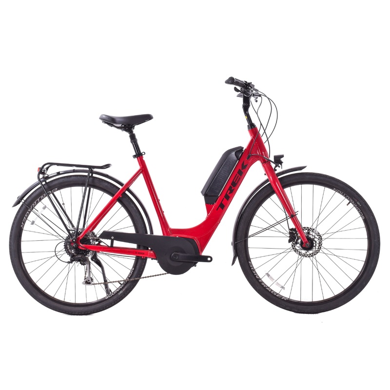 For sale is a USED 2023 Trek Verve+ 2 Lowstep Electric Hybrid Bike Large Red Step Thru Bosch Motor