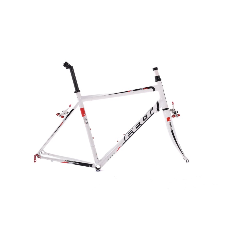 For sale is a USED Felt Z100 road bike frame. The size 58cm / Large aluminum frame is equipped with a matching carbon fork, and includes a headset, seatpost, and brake calipers to get your build going.