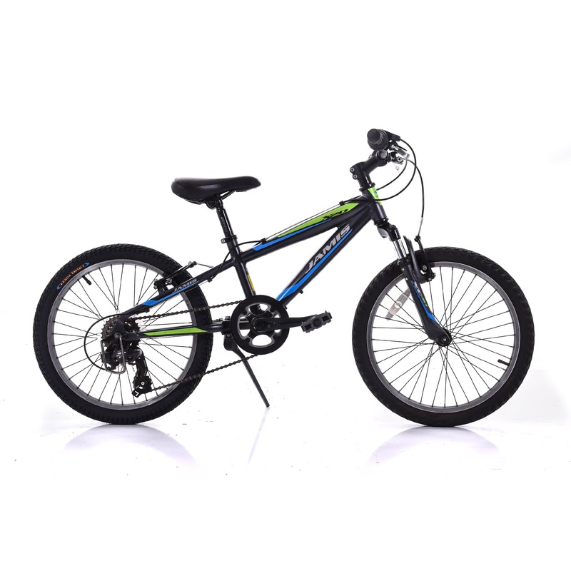 For sale is aUSED Jamis X.20 Kids Hardtail Mountain Bike 20" Wheels 1x6 speedSPECS:Size: 20"Standover Height: 20"Wheel Size: 20"Drivetrain: Shimano Tourney, 1x6Brakes: DiscSuspension: XC 40Color: Black/Blue/GreenWeight: 25 lbs 7 ozExtras: Kickstand, derail