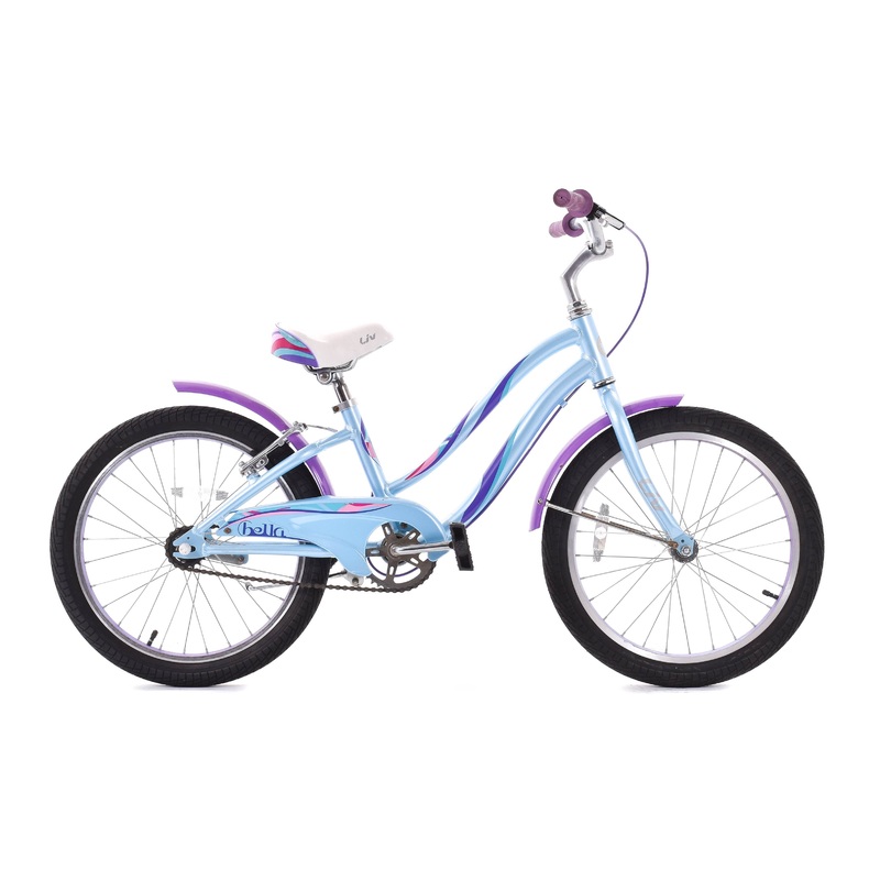 For sale is a USED Liv Bella Kid’s 20″ Cruiser Bike w/ Fenders Light Blue/Purple/White