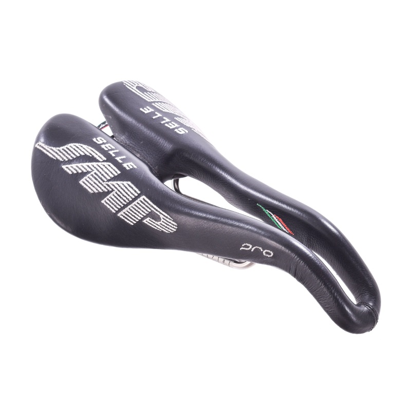 For sale is a USED Selle SMP Pro Leather Saddle Black Road w/ Cutout Steel Rails (3 of 3)SPECS:Brand: Selle SMPModel: ProGender/Age: Unisex, AdultRail Material: Stainless SteelSaddle Cut Out: YesMaterial (non-clothing): LeatherLength: 278mmWidth: 148mmWeig