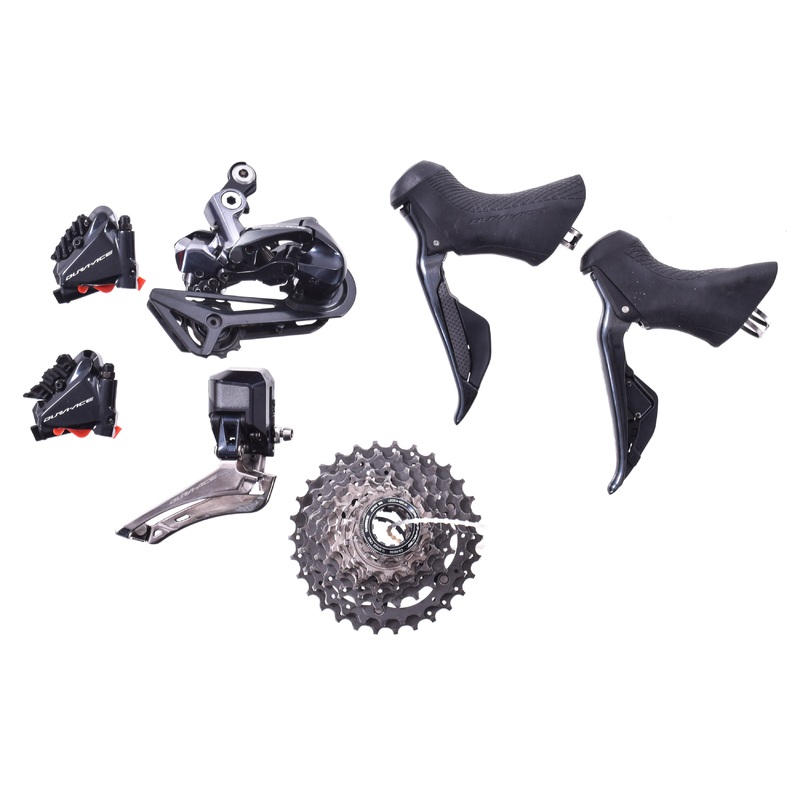 For sale is USED Shimano Dura Ace 9170 Di2 Road Groupset 2x11 SpeedSPECS:Brand: ShimanoModel: Dura-Ace Di2Shifters: Shimano Dura-Ace Di2 ST-R9170Brakes: Shimano BR-9170, Hydraulic, Flat MountFront Derailleur: Shimano Dura-Ace FD-R9150Rear Derailleur: Shima