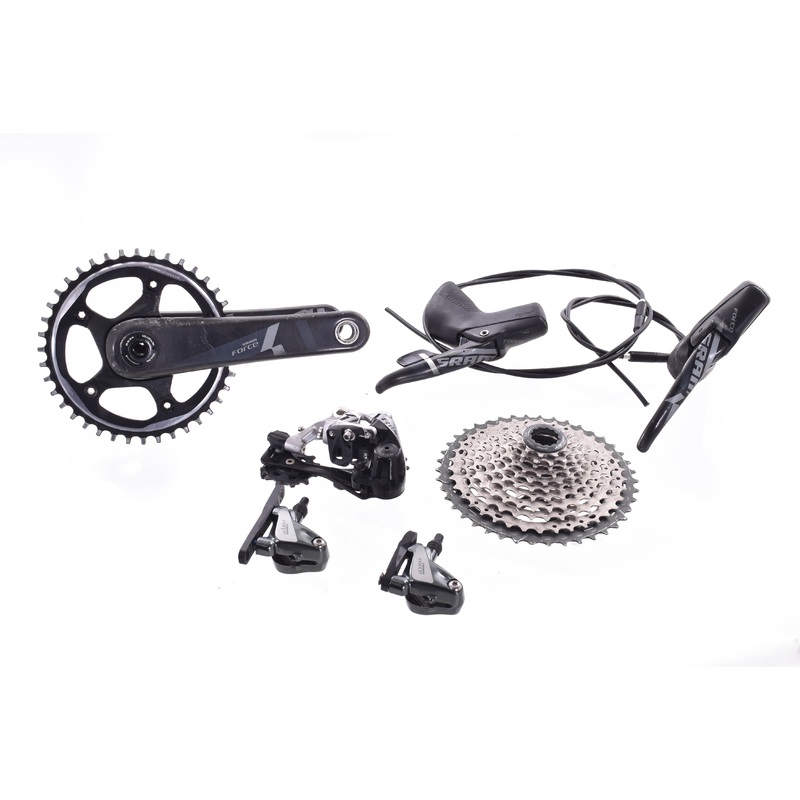 For sale is aUSED SRAM Force/Rival Hydro 1x11 speed Groupset 175mm 40T Carbon Crank BB30 11-42T HG CassetteCOMPONENTS:Shifters: SRAM Force, DoubleTapBrakeset: SRAM Force, HydroRRear Derailleur:SRAM Rival 1, Type 3, Exact ActuationCrankset: SRAM Force, 175m