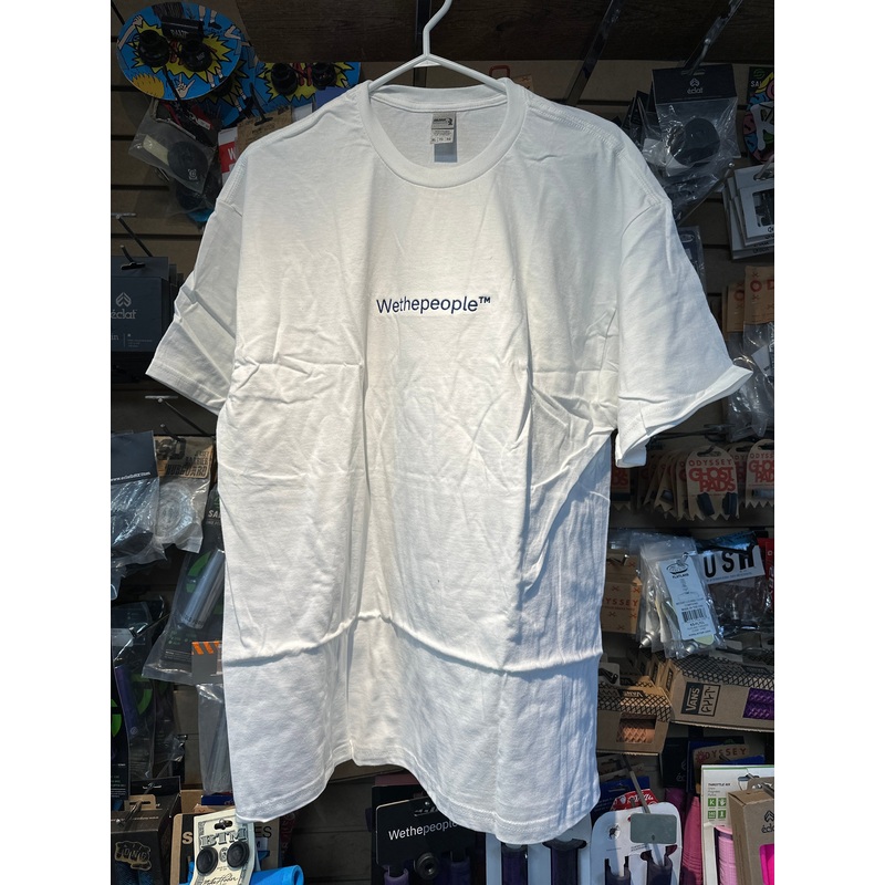 Custom Tie dyed garment with blue Wethepeople text embroidery across the chest, WTP labelling.