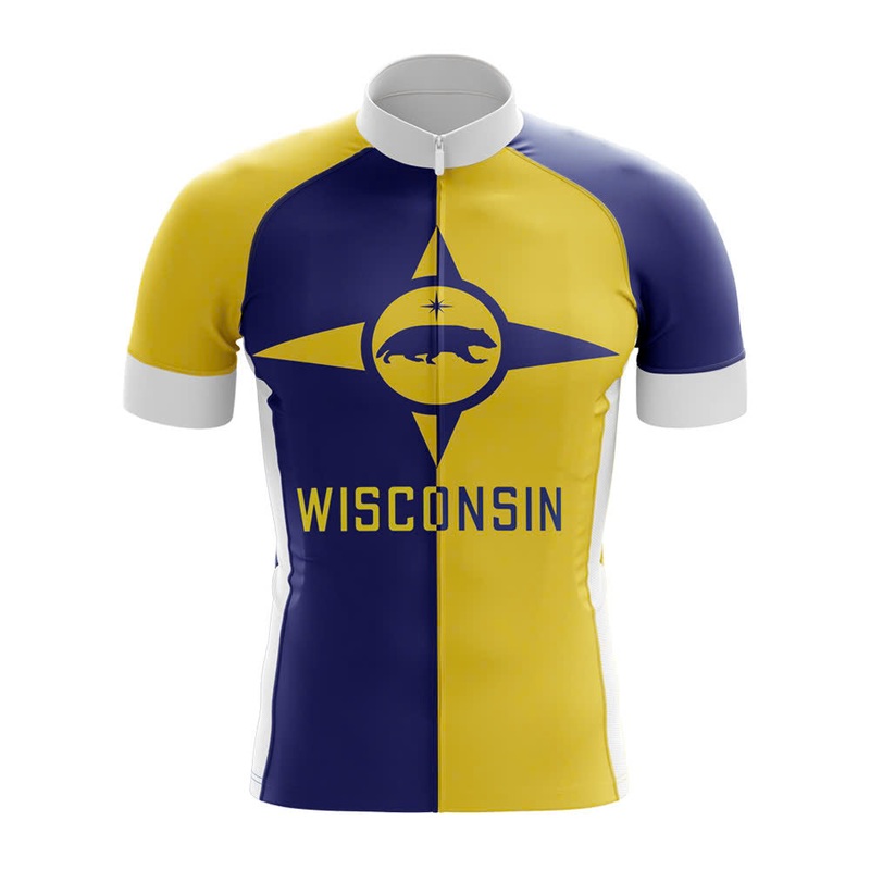 Explore the roads and trails with this eye-catching design that combines a compass emblem and the iconic badger silhouette. Celebrating Wisconsins adventurous spirit, it pairs vibrant navy and gold panels with lightweight, moisture-wicking fabric for all-day comfort. Whether youre cruising through the city or tackling scenic routes, this jersey connects you to your Wisconsin roots in style.