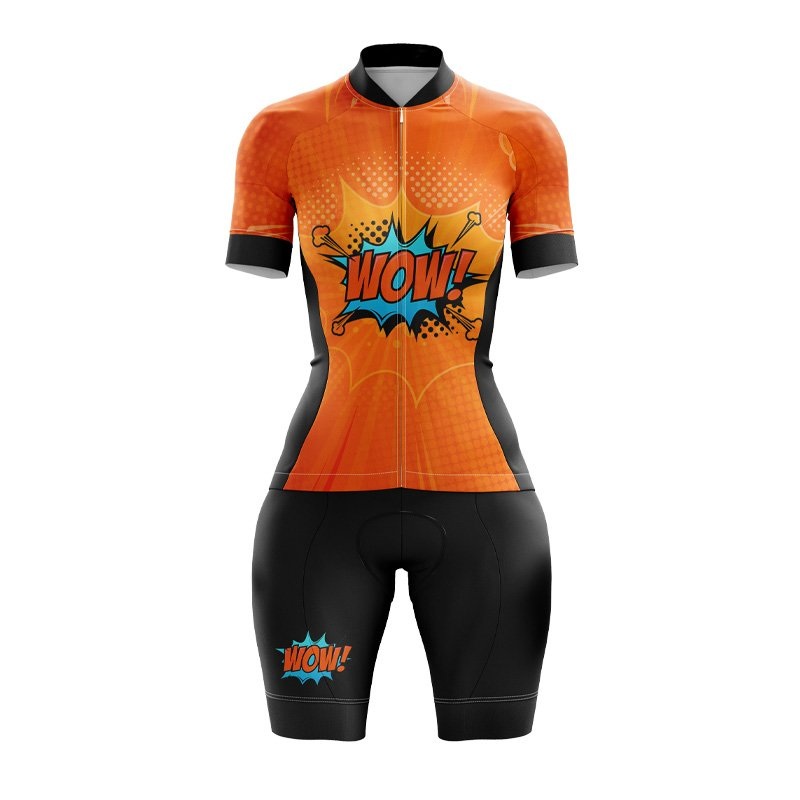 Wow Orange Pop Art Womens Cycling Kit S Bib Shorts No Pockets